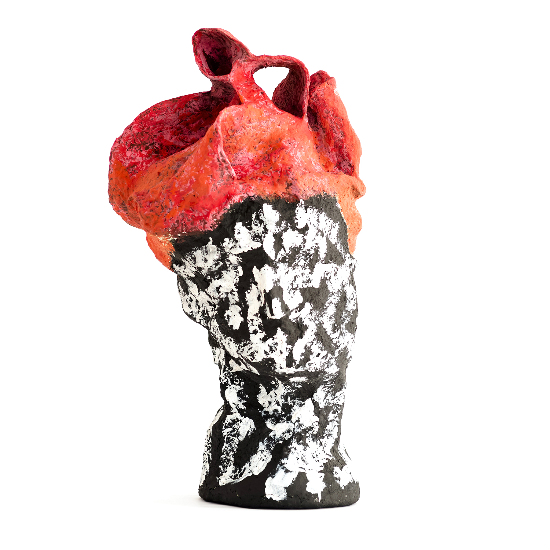 Newspaper, recycled cardboard and cardboard, vinyl glue, wire mesh, wall tempera and pigments.